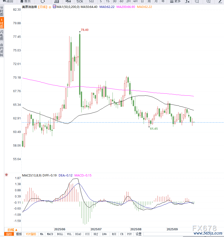 好意思原油日线图表示价钱在勾通下过时于62好意思元近邻赢得撑捏,短期走势防守在区间轰动面容中。下方60—62好意思元区间组成进犯撑捏,若跌破将加大下探压力;